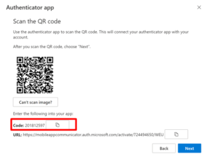15. Volte para a página web de registo e carregue em Next, será apresentado o campo em que deverá colocar o código apresentado na aplicação: