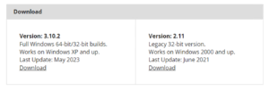 1. Aceder ao site Desktop Info – Glenn’s Page (delahoy.com) e selecionar o link de download para a versão indicada para a arquitetura do sistema onde vamos instalar a aplicação (32 vs 64 bits):
