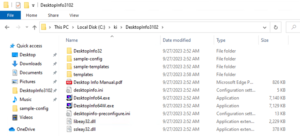 3. Ao analisarmos a pasta da instalação, encontramos o executável do programa DesktopInfo64.exe (o DesktopInfo64w.exe é para a aplicação correr em modo janela), bem como o ficheiro desktopinfo.ini que contém as configurações por defeito do software. Está também presente um extenso manual em formato pdf que aconselhamos como referência para customizações futuras.