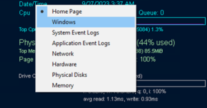 4. Clicando no executável DesktopInfo64.exe iniciamos a aplicação com a sua configuração por defeito. Nesta configuração temos acesso à data/hora, utilização de cpu, ram, disco, entre outras informações.
