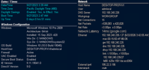 6. Por exemplo as páginas Windows e Network retornam a seguinte informação sobre o SO e definições de rede da máquina em questão:
