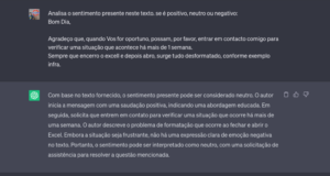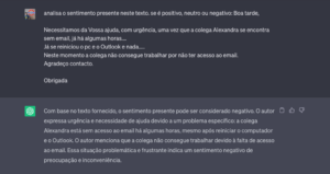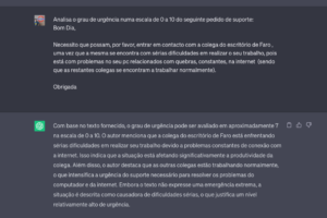 Em resumo, a utilização do GPT-4 na análise de sentimento de texto no contexto de um departamento de suporte técnico traz benefícios significativos. A capacidade de identificar e compreender as emoções e perceções dos clientes expressas nos tickets de suporte permite a adequada priorização, encaminhamento eficiente e satisfação do cliente. Ao combinar a inteligência artificial com o conhecimento e experiência humanos, as empresas podem oferecer um suporte técnico mais assertivo, ágil e satisfatório, aprimorando a experiência do cliente e fortalecendo a sua relação com a marca.