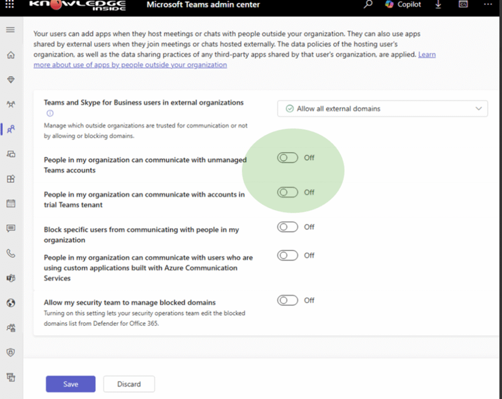 Políticas de Acesso Externo no Teams: Se possível fechem por defeito e abram por allow-list. Convidados? Sim, mas com governance (aprovação, expiração automática, e revisão periódica). Acesso externo de contas não empresariais? Desautorizar por completo.