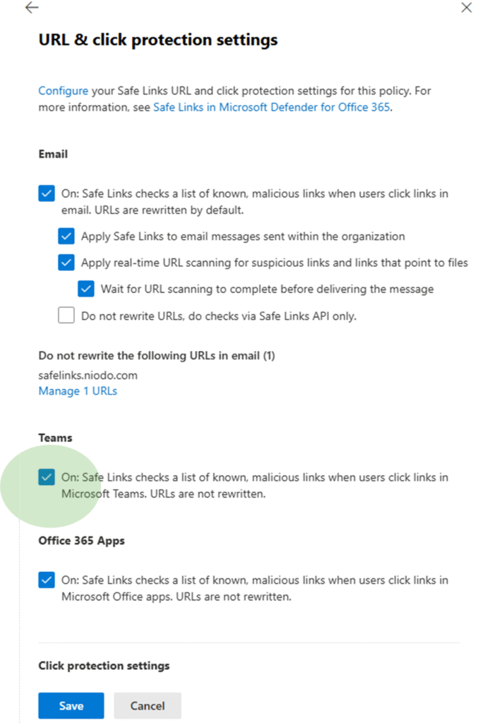 Proteções de Link e Conteúdo: Ativem Defender for Office 365 com Safe Links para Teams