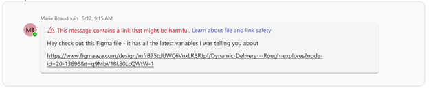 Agora, o Teams analisa automaticamente os links partilhados em chats, canais e reuniões. Se um URL for considerado perigoso, todos os participantes recebem um aviso visual na conversa. O remetente pode editar ou eliminar a mensagem, e os destinatários são alertados antes de clicarem.